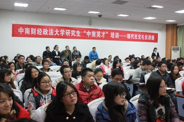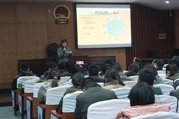 (学生记者 曹晶晶 罗兰 施卓南)为使我校研究生进一步理解现代社交礼仪文化,塑造良好的职业形象和个人形象,校研究生会“中南英才”系列培训之现代社交礼仪培训讲座于12月12日晚7时在我校文泰楼模拟法庭(二)拉开帷幕。本次讲座主题为中西方餐桌礼仪,主讲人为我校工商管理学院旅游管理系旅游经济教研室主任邹蓉老师。