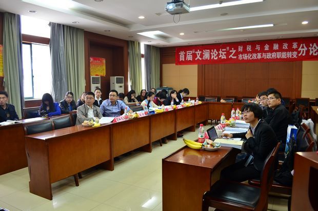 开幕式结束后,“文澜论坛”的主论坛报告阶段正式开始。来自武汉大学的文建东教授以“三中全会后市场化改革的背景与展望”为题,介绍了中国的经济改革历程与“中国模式”的形成,在评价过去经济改革与增长的基础上指明了中国未来进一步市场化的改革方向。长江证券股份有限公司执行副总裁、长江期货有限公司董事长董腊发先生则以2013年8月16日证券市场发生的“光大事件”为切入点,深入分析了证券行业创新发展及风险管理的可行路径。最后,来自我校经济学院的卢现祥教授从信息、信念、利益、困境四个方面,详细阐述了“全面深化改革的障碍”。三位发言人深入剖析,生动阐释,以经济学角度系统分析了全面深化改革的相关内容,并提出了有建设性的意见与建议,现场气氛热烈。