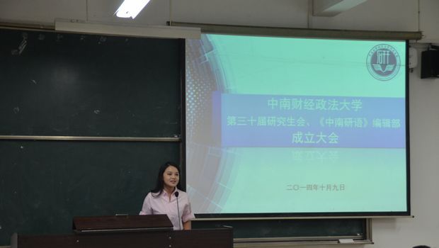 (学生记者 韩旭 周志源)10月9日晚7时,中南财经政法大学第三十届研究生会、第二届《中南研语》编委会成立大会在文添105教室举行。研究生院、党委研究生工作部思想政治教育办公室主任、研究生团委副书记白玉老师,本届研究生会及《中南研语》编委会全体成员参加了本次大会。