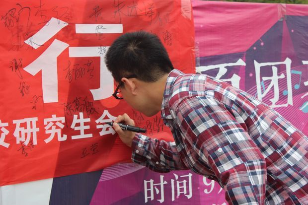 (学生记者 夏雨龙 吴迪 易杰 )2014年8月1日,《国务院关于同意设立“扶贫日”的批复》明确规定,自2014年起,将每年的10月17日设立为扶贫日。为贯彻落实国务院扶贫办开发领导小组制定的《2014年教育系统扶贫日活动方案》,我校制定了《中南财经政法大学2014年扶贫日活动方案》。根据相关方案要求,中南财经政法大学研究生会于10月17日中午在校南湖校区五羊广场开展了“扶贫日”主题图片展宣传教育活动。同学们积极参与,纷纷在宣传横幅上留下自己的签名,此次活动取得了良好的效果。