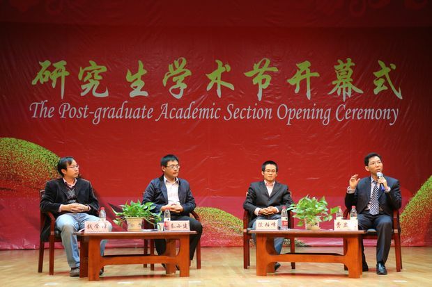 第五届研究生学术节开幕式结束后,《寻找社会热点中的论文选题》青年学者交流论坛正式开始,法学院陈柏峰教授、工商管理学院钱学锋教授和费显政副教授作为嘉宾对“如何从社会热点中寻找论文选题”这一问题谈了各自的看法和见解。论坛由法学院教师秦小建主持。