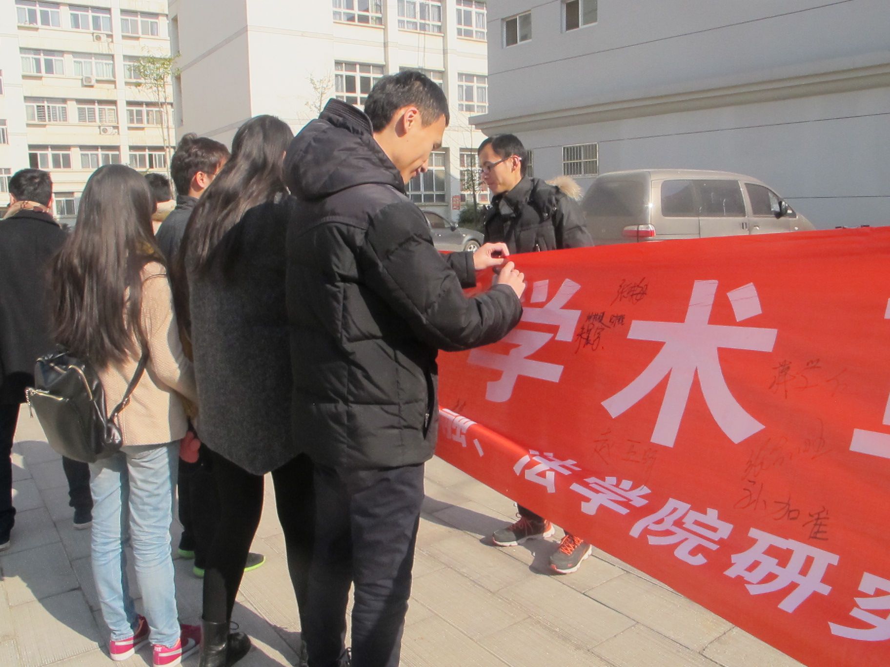 12月22日中午11:15分,“摒弃学术不端,维护学术尊严”签名活动在十食堂门口进行。来自全校各个学院的数百名同学在横幅上签下自己的名字,记录自己的承诺,让大家意识到诚信的重要性。