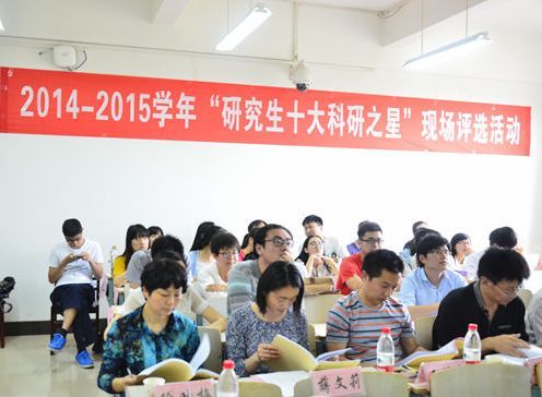 (学生记者 肖悦 王开玉 董文文)为表彰我校研究生在科研创新工作中取得的优异成绩,激发大家热爱学术,崇尚求知的科研热情,由我校研究生院、党委研究生工作部主办,校研究生会承办的2014-2015学年“研究生十大科研之星”评选活动于5月14日下午在文添108教室举行。