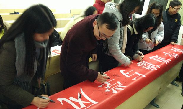 在交流会尾声,同学们纷纷在主题横幅上签字,以表达对科学道德及学风建设的支持与维护。