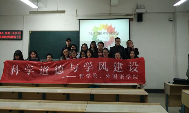 2015年12月23日晚,由研究生院、党委研究生工作部主办、外国语学院与哲学院联合承办的“科学道德与学风建设”主题交流会在文添楼101教室进行。此次活动旨在开拓研究生视野,引导同学们遵守学术规范,坚守学术诚信,完善学术人格,维护学术尊严,摒弃学术中的不端行为。