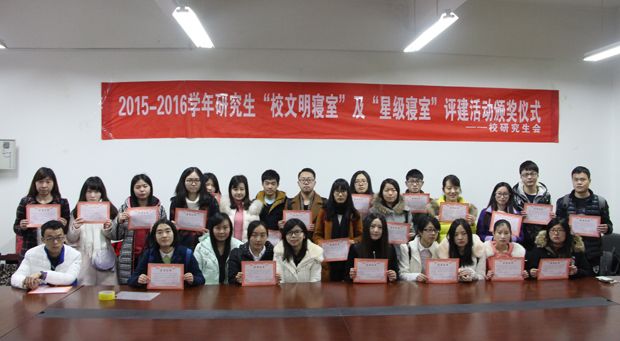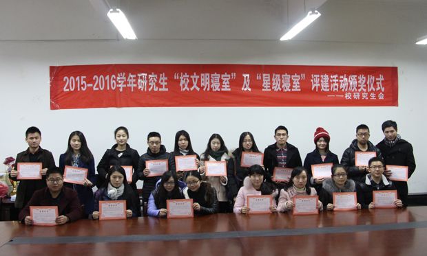 2016年1月6日,在大家的热烈期待中,党委研究生工作部为获得“校级文明寝室”及 “星级寝室”的57位代表颁发了奖状和奖品,表彰先进,树立典范。至此,本次评建活动圆满落下帷幕。