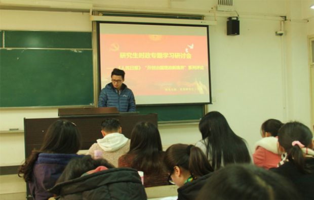 思想是行动的先导,学习是进步的阶梯。习近平总书记的系列重要讲话,是中国特色社会主义理论体系最新成果,是指导新的伟大斗争最鲜活的马克思主义。此次时政专题学习研讨会对我校研究生深刻理解我党的治国理政方针,引导同学们积极践行社会主义核心价值体系,坚定中国特色社会主义道路自信、理论自信、制度自信具有重要意义。