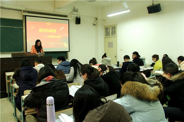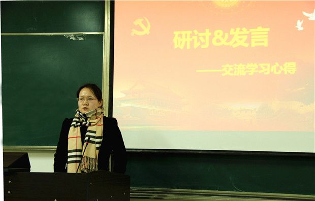 在研讨和交流环节,与会代表们依次发言,畅谈学习心得和感想。张朕同学以部分党员入党动机不纯正的现象为切入点,呼吁党员要注重政治性、先进性和群众性,研究生干部要对上把握政治动态,对下关注群众需求;杨孟夏同学提出了与“实质重于形式”传统观点所不同的理解,他结合自身学习马克思专业的经历,强调形式是接近实质的基础路径,并剖析了机遇与挑战之间的辩证关系;郭琦同学针对如何提高学校的知名度和研究水平畅谈中南梦;刘昱龙同学将“治国理政”移植于我们自身的管理,解析为“治好自己的思想、理好自己的学习生活”;张泊宁同学从伟大旗帜、价值引领、文化根基、战略任务、发展道路和奋斗目标等六个方面理解治国理政的总布局;冯北辰同学从两岸关系发展的视角探讨了这两篇评论文章刊登的意义;赵娜同学从法学专业的角度剖析了法治与德治的协调统一;刘笑研同学提出作为当代大学生应该具备使命感和责任感;程小曼同学则主张在文化的碰撞与交流中让世界看到一个全面而深刻的中国……