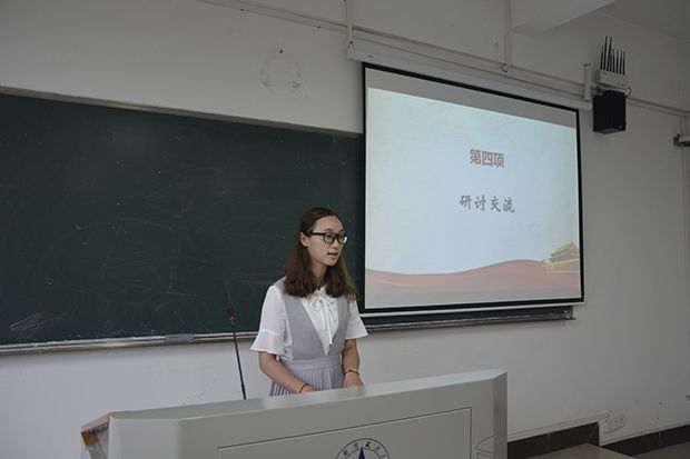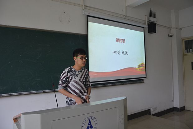 随后,在研讨和交流环节,与会代表们依次发言,畅谈学习心得和感想。来自统计与数学学院的丁婷婷同学提出,为共产主义奋斗终身不仅是一个口号,更是一种信仰;来自法学院的范娜同学强调,作为一名共产党员,应坚定共产主义信仰,具有较强的民主观、法治观、组织观,以及全心全意为人民服务的意识;来自财政税务学院的曲丰逸同学简要回顾了中国共产党的光辉历程,他将习近平总书记重要讲话精神与自身实践相结合,提出我们应反对教条主义,强化党员信仰,一切应从中国实际出发,坚定不移地走改革开放的道路;来自哲学院的江林謄同学认为,社会主义本质的最终实现是一个动态过程,需要人民不断为之奋斗。来自马克思主义学院的毕金杰同学以党的思想宣传和意识形态宣传为出发点,指出中国共产党的思想政治教育具有重要意义。他强调在互联网时代,我党面临着思想多元化的挑战,需要人民携手为中国共产党意识形态的坚固长城贡献力量。来自外国语学院的吴珂璐同学回首了中国共产党95年的风雨历程,波澜壮阔而又艰难曲折,老兵微微颤抖的军礼令她动容。她指出作为一名共产党员,应担当起党员的称号,更不应抱怨;来自工商管理学院的孙磊指出,作为一名研究生,应将自身理想与国家事业相融合,做到知行统一、德才兼备,倡导良好的社会风气。来自经济学院的周胥丞同学指出,作为一名中国共产党党员,应信党爱党,不为网络言论或其他宣传所动??;来自公共管理学院的蒋诗同学表达了对中国共产党最崇高的敬意,提出我们应铭记历史,在思想、学习、工作、生活中,都应积极进取,贡献青春力量;来自会计学院的钱文琪同学认为,中国共产党95年的成功秘诀在于我党优良的作风和严明的纪律……