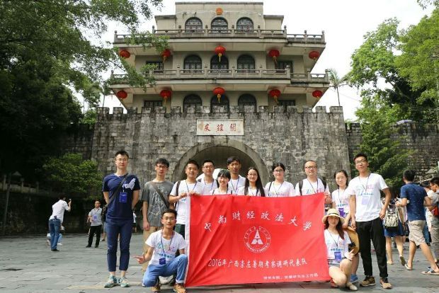 (通讯员 杨孟夏)7月12日至8月15日,由中共崇左市委组织部、市人社局、团市委等部门联合开展的广西崇左市“名校学子边关行”社会实践活动成功举行,来自清华大学、北京大学、中国人民大学等18所国内高校共计130多人参加。我校作为华中地区唯一的高校代表队,在领队刘宇老师的带领下,以硕、博研究生为主要成员的实践团参与了此次活动。