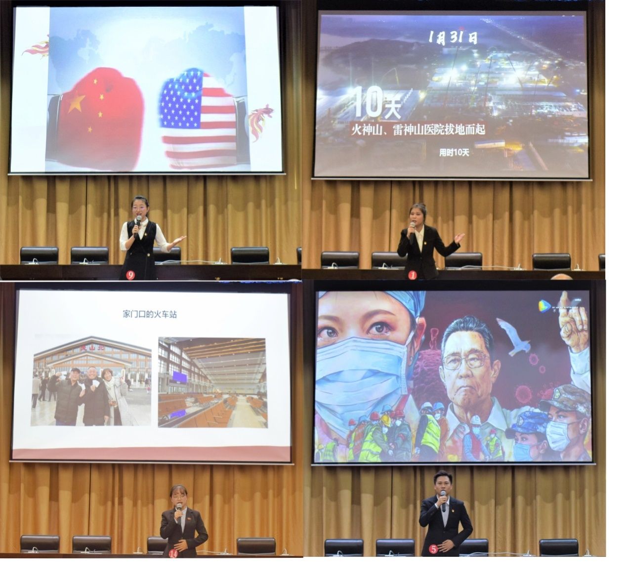 经过学院(中心)初赛、学校复赛,14名同学脱颖而出获得了本次演讲比赛的决赛资格。在比赛中,选手们或慷慨激昂,或热情洋溢,或感人至深。来自外国语学院的韩思淼带来了题为“我的梦,中国梦”的演讲,向大家分享了自己成为一名卓越外交家的梦想,号召广大新时代青年为梦想奋斗,为建成社会主义现代化强国而不懈努力。来自法律硕士教育中心的雷程淋带来了题为“曾经是你,现在是我”的演讲,将一位经历了汶川大地震和新冠肺炎疫情的四川女孩的抗疫故事娓娓道来,讴歌了那些勇敢无畏的时代英雄,赞扬了保卫祖国、无私奉献的青年榜样。来自工商管理学院的郭容华围绕精准扶贫首倡地湘西的交通发展讲述了扶贫政策对湘西的影响和国家政策对她个人的成长帮助,表达了感恩党、忠于祖国和人民的真挚情怀。比赛进程高潮迭起,选手们精彩纷呈的演讲赢得了现场此起彼伏的掌声。