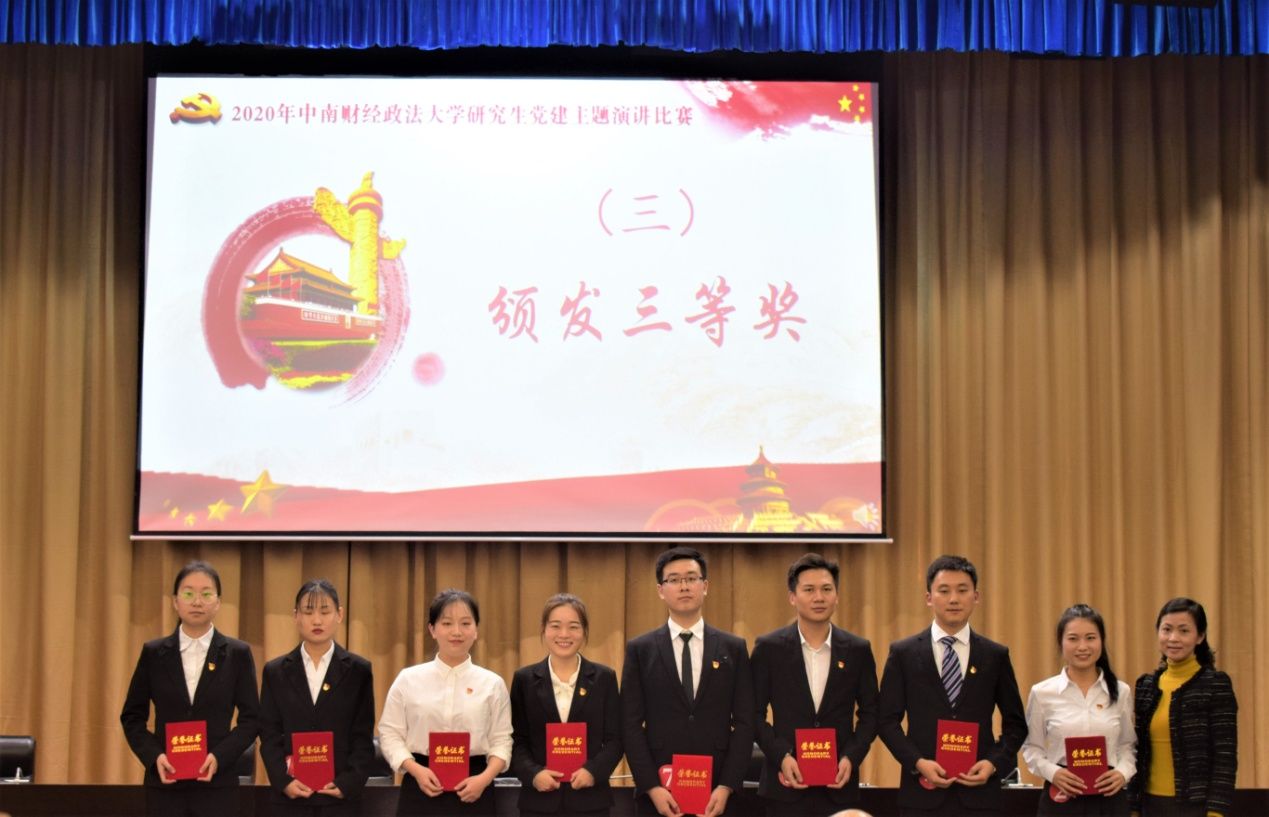 经过一番激烈的角逐,外国语学院的韩思淼和法律硕士教育中心的雷程淋荣获一等奖;工商管理学院的郭容华等4名同学荣获二等奖;法学院的樊雯雯等8名同学荣获三等奖;马克思主义学院的王夏玲等12名同学荣获优秀奖;外国语学院、法律硕士教育中心、工商管理学院、财政税务学院、新闻与文化传播学院荣获优秀组织奖。比赛结束后,嘉宾们为获奖选手们颁奖并合影留念。