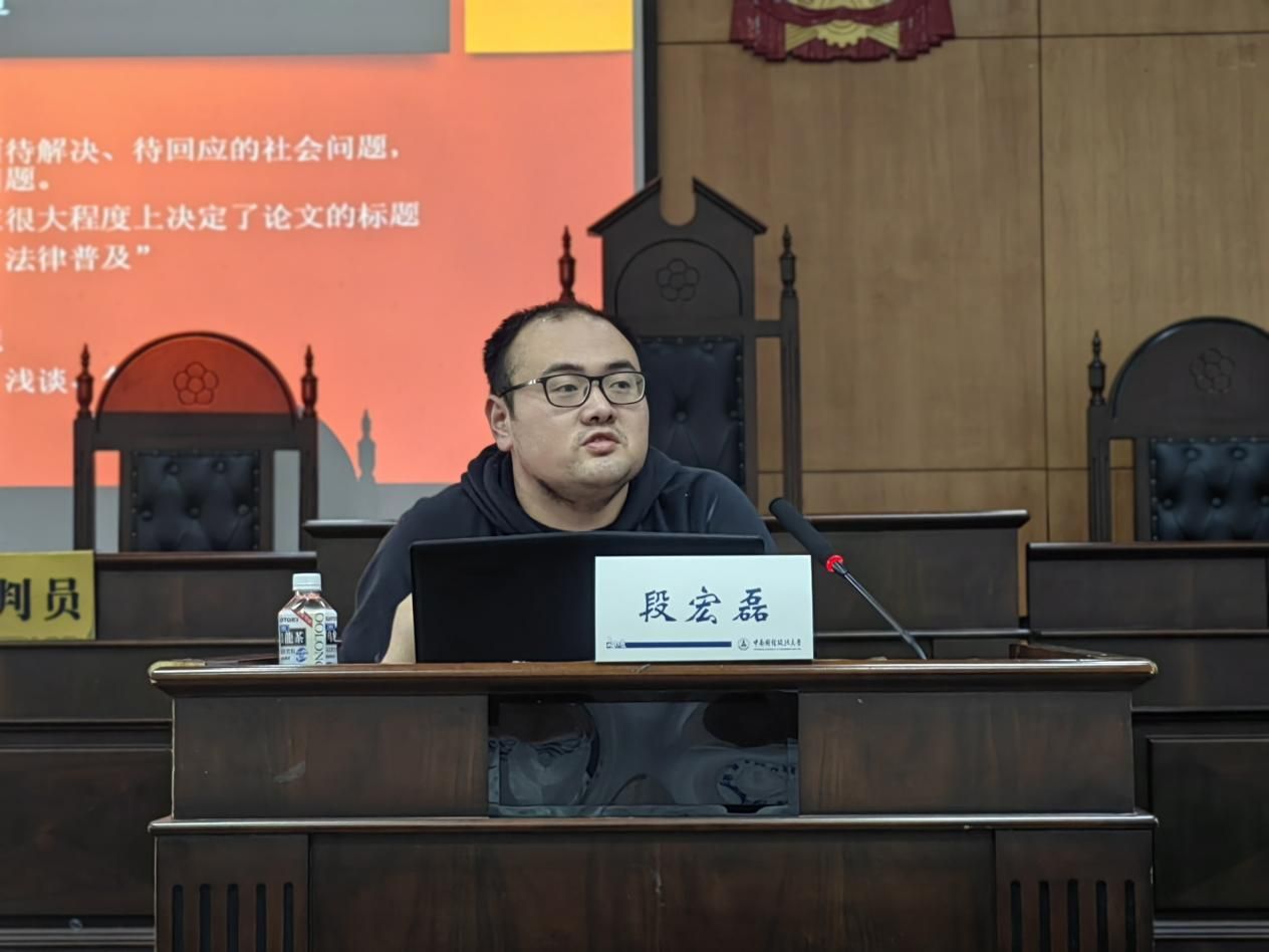 (通讯员:刘洁 彭慧媛)2022年4月8日下午14时30分,法学院研究生会在模拟法庭(二)顺利举办了研究生研修系列讲座第五讲——论文写作之“开题有道”。湖北经济学院法学院段宏磊副教授受邀担任本次讲座的主讲人,我校法学院经济法系李乔彧老师担任主持人,辅导员刘洁老师出席了本次讲座。