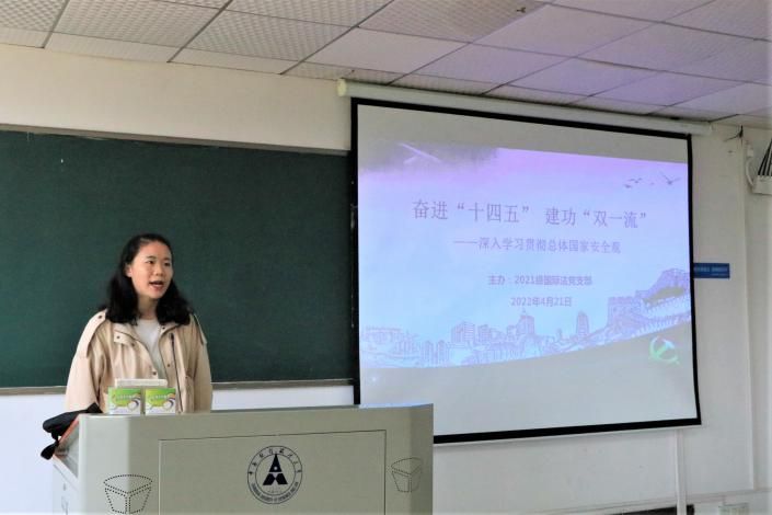 本次党课由国际法党支部主办,校人武部军事理论教研室副教授胡万松老师受邀为全体党员和部分积极分子就“国际格局与国家安全”进行授课辅导,辅导员曾怡然老师出席本次活动。