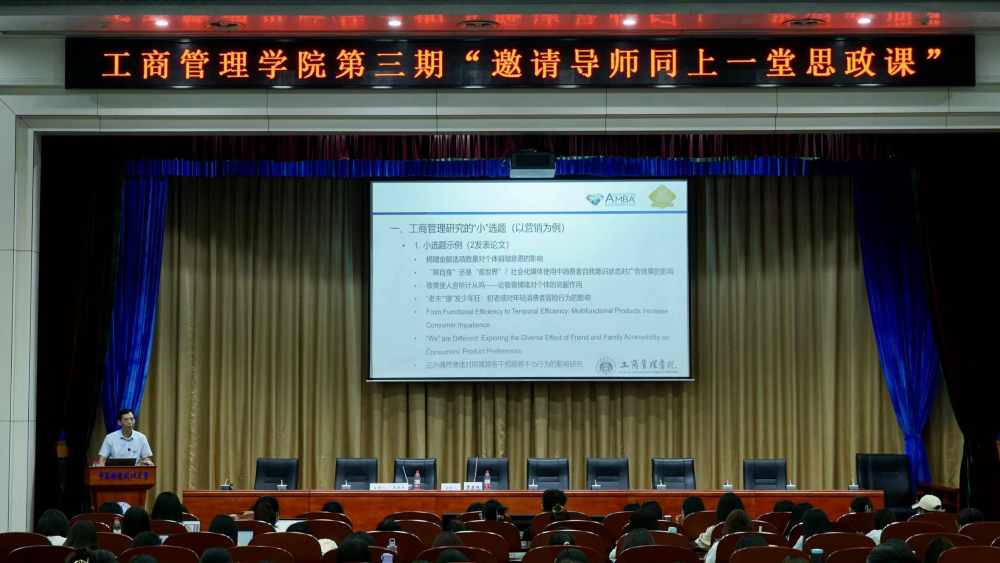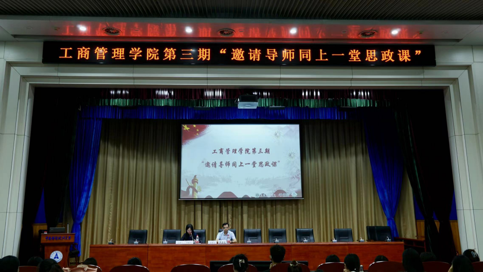 “邀请导师同上一堂思政课”活动自2021年9月开办以来,已经成为工商管理学院的一项特色学生思政品牌活动。师生同上专题思政课不仅能将专业教育与思想政治教育有机融合,有效建立导师协同育人机制,而且是工商管理学院贯彻落实五育并举之“以德研商”理念的有效举措,不断引领学生形成正确的世界观、人生观和价值观,让思想政治教育成为青年学生成长之路的灯塔。