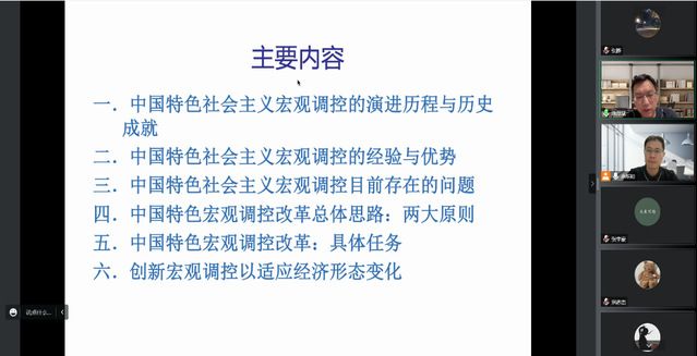(通讯作者 范媛 张晔)9月22日晚上19:30,第233期文澜大讲堂“《道德经》与中国特色宏观调控”专题讲座在线上顺利召开。本次讲座主持人为中南财经政法大学金融学院院长余明桂教授,主讲人为中国人民大学研究生院常务副院长、交叉科学研究院院长陈彦斌教授,金融学院师生共300余人参加此次讲座。