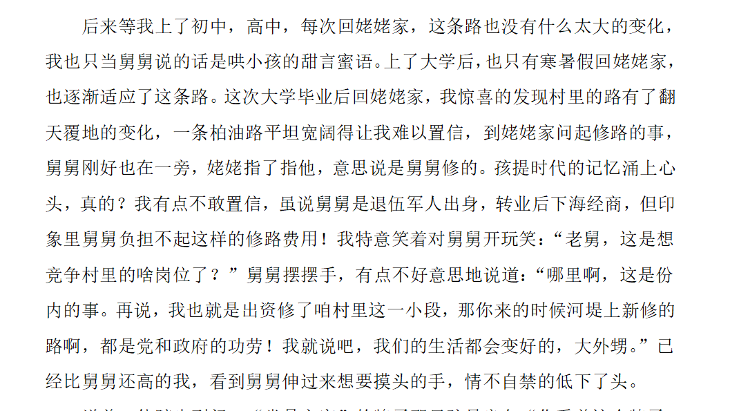 二等奖:《一条路的缩影》(节?。┳髡撸?/span>梁子晖(2204班)