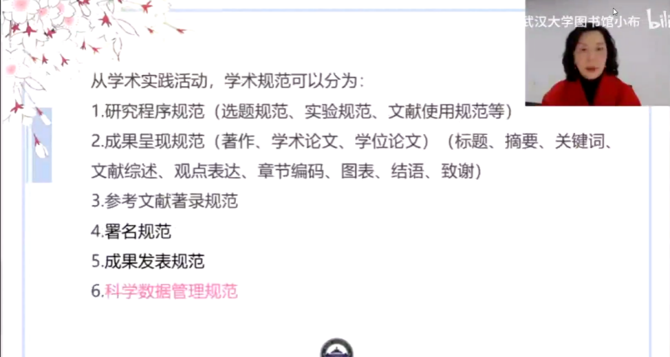 报告会上,魏晨雪老师以“坚守学术底线,传承高洁学风”为主题,从“系好学术生涯第一??圩印薄ⅰ把醪欢诵形睦嘈图拔:Α焙汀拔倚Q豕娣都把宦畚闹柿抗芾泶胧比龌方谡箍ǜ?。报告伊始,魏晨雪老师为大家播放武汉大学图书馆的讲座视频引入学术不端行为这一话题,该视频从科学精神与学术道德、学术规范及案例分析、科学伦理及案例分析、学术不端预防与规制四个方面进行了详细阐述。