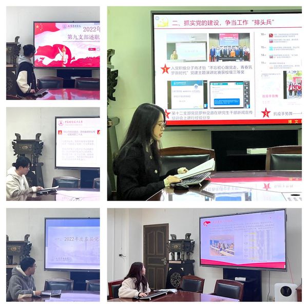 (通讯员 郑永杰 王浩旸)为深入学习贯彻党的二十大精神,落实《工商管理学院2022年度党支部书记抓党建述职评议考核方案》要求,全面总结工商管理学院2022年度研究生党建工作,工商管理学院研究生党总支于2023年2月20日14:30在文泉楼北407室召开2022年度研究生学生党支部书记抓党建述职评议会,工商管理学院3个硕士研究生党总支副书记和16个硕博学生党支部书记进行现场述职。工商管理学院党委副书记朱艳平、硕士研究生2022级辅导员兼党总支书记赵元元、博士研究生辅导兼党总支书记员姜倩倩、硕士研究生2020级辅导员徐一菱兼党总支书记和硕士研究生2021级辅导员兼党总支书记江为民参加会议。述职会议由朱艳平副书记主持。