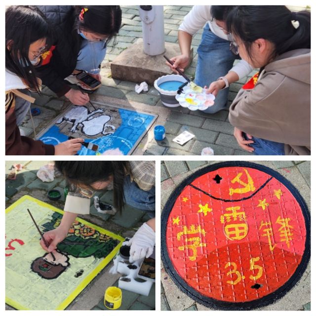 本次井盖彩绘围绕着“学习雷锋”、“武汉风貌”、“青春风采”等主题开展,在活动当中,志愿者们顶着太阳,用画笔在井盖上一笔一笔地展现自己的创意。经过一次次的涂刷,让平平无奇的井盖变得色彩斑斓、妙趣横生。