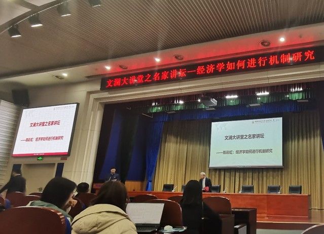 接着,陈彩虹教授就“什么是经济机制研究?”、“如何做经济机制研究?”、“三点总结”三个部分展开了介绍,讨论了经济激励与经济机制的本质,介绍了三本有关专著中的机制研究内容,并对同学们进行了推荐,回到本部分问题对经济机理与经济机制的不同之处进行了具体阐述,并将经济机制中的几种重要关系进行了梳理,包括单向因果关系、互为因果关系、矛盾关系、对立关系、悖论关系,后对悖论关系进行了举例论证,提出了自己的一些思考。讨论了同学可以如何做经济机制研究,指出准备基础理论是前提,后需要分析内在关系的种类,表示学生应明了于心,陈教授指出统计数据的运用与解读仍是论文写作用的重要部分。通过多个案例分析,陈教授对于不同内在关系的有关机制研究的研究方法进行了展示与详细阐述。