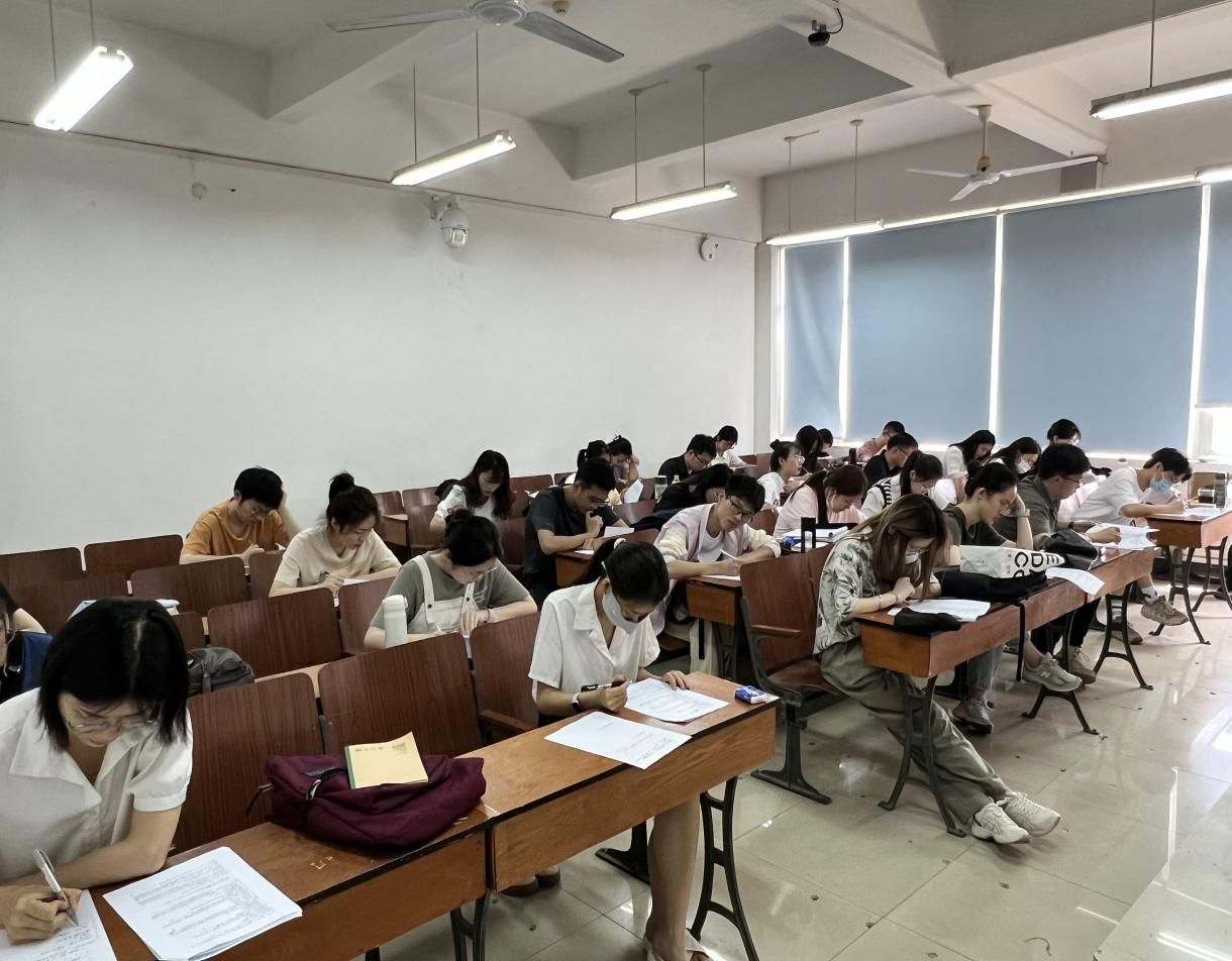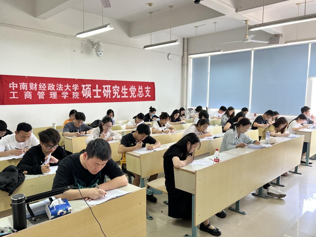 本次知识竞赛初赛以笔试形式进行,考场设置在文添楼411、412414,考试题型有单选、多选、填空和简答题,题目范围为中国共产党第二十次全国代表大会报告、中国共产党章程(2022年版)、中国共产党党史和中南财经政法大学校史、中南财经政法大学工商管理学院院史等。