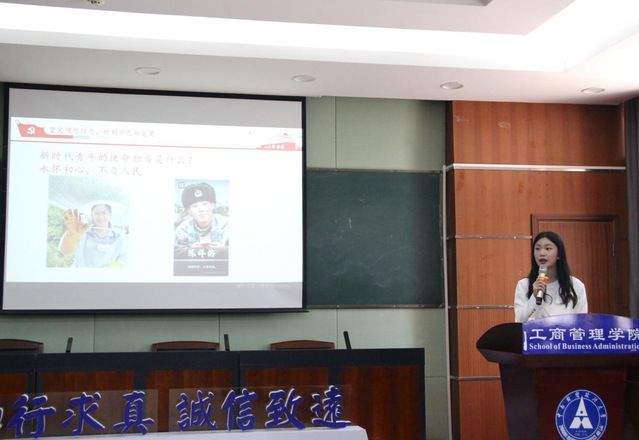 国际商务专业的党员张龙生同学从青年党员视角阐述了新时代青年的使命与担当,从抗日战争到抗美援朝,回顾了中国共产党一次次打破封锁、不畏挑战、不断成长的坚毅历程,用历史事实彰显中国共产党和中国人民不畏困难、艰苦奋斗的伟大精神,以青年之声号召新时代中国青年担当时代责任,增强综合素质,勇于创新创造,积极奉献社会。