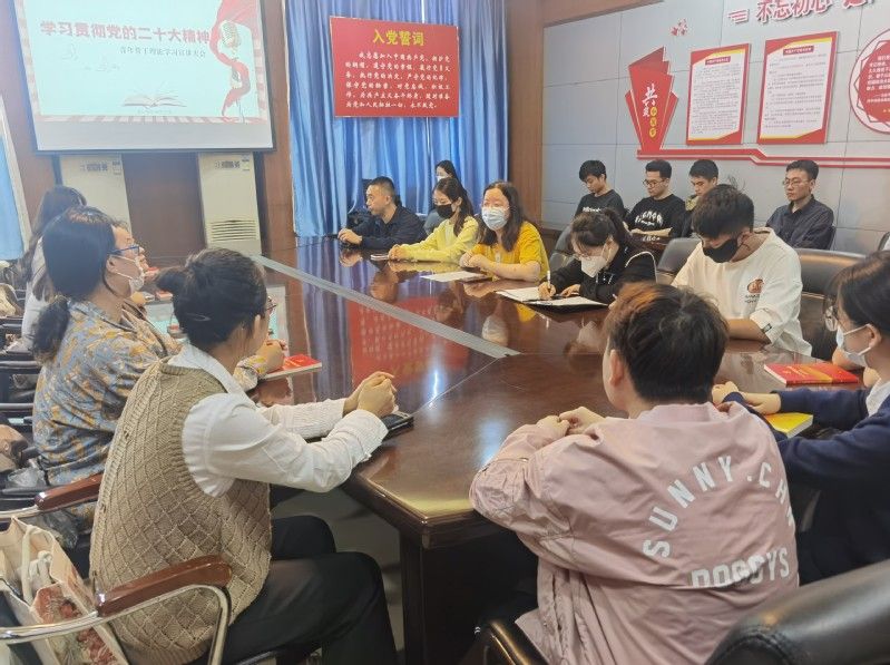 为深入开展学习贯彻习近平新时代中国特色社会主义思想主题教育,认真学习宣传贯彻落实党的二十大精神,5月8日中午12:30,会计学院研究生会召开学习贯彻党的二十大精神青年骨干理论学习宣讲大会?;嵋橛裳芯可嶂葱兄飨岳鲇ㄖ鞒?,研会全体青年骨干参与。