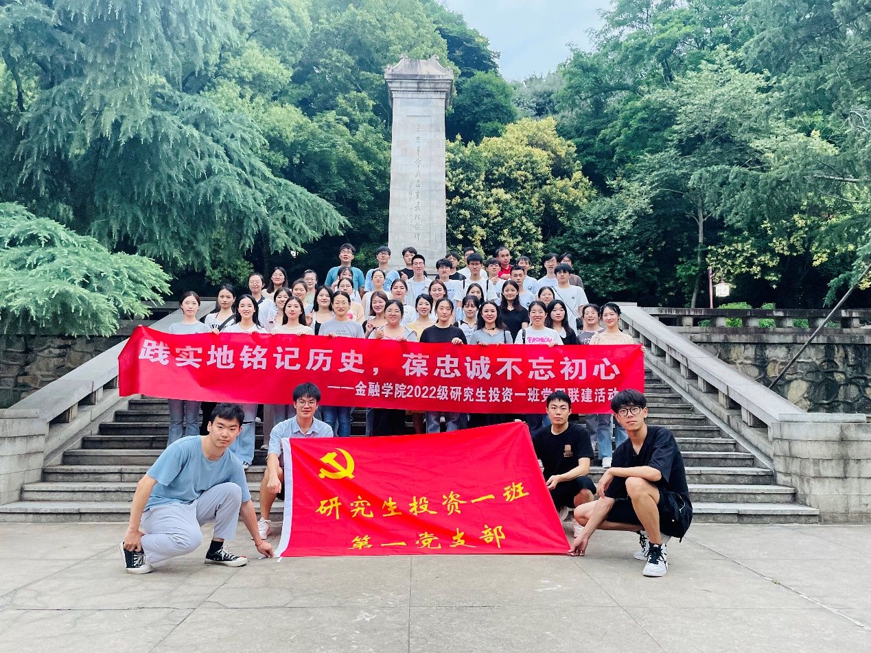 (学生记者 郭瑞贤)为深入学习贯彻习近平新时代中国特色社会主义思想和党的二十大精神,充分发挥党支部的政治引领作用,529日,金融学院研究生投资一班第一党支部联合金融学院22级投资一班团支部在蛇山举行践实地铭记历史,葆忠诚不忘初心——金融学院2022级研究生投资一班党团联建活动。党支部全体党员、团支部全体团员参加本次活动。由高慧、蒋代中、张宇豪、张彤共同主持。
