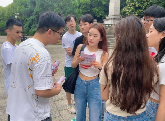 本次活动“党史”“航空航天成就”、中南财经政法大学校史”、“乡村振兴”、“金融投资改革”大主题开展“红色记忆·古迹寻‘宝’”,每个主题包含5主题故事碎片,碎片散落在蛇山各处,团队需合作找齐5个碎片并一起到达终点活动开始前,全体成员通过抽签形式分成五支队伍,并由队长选取本队主题。