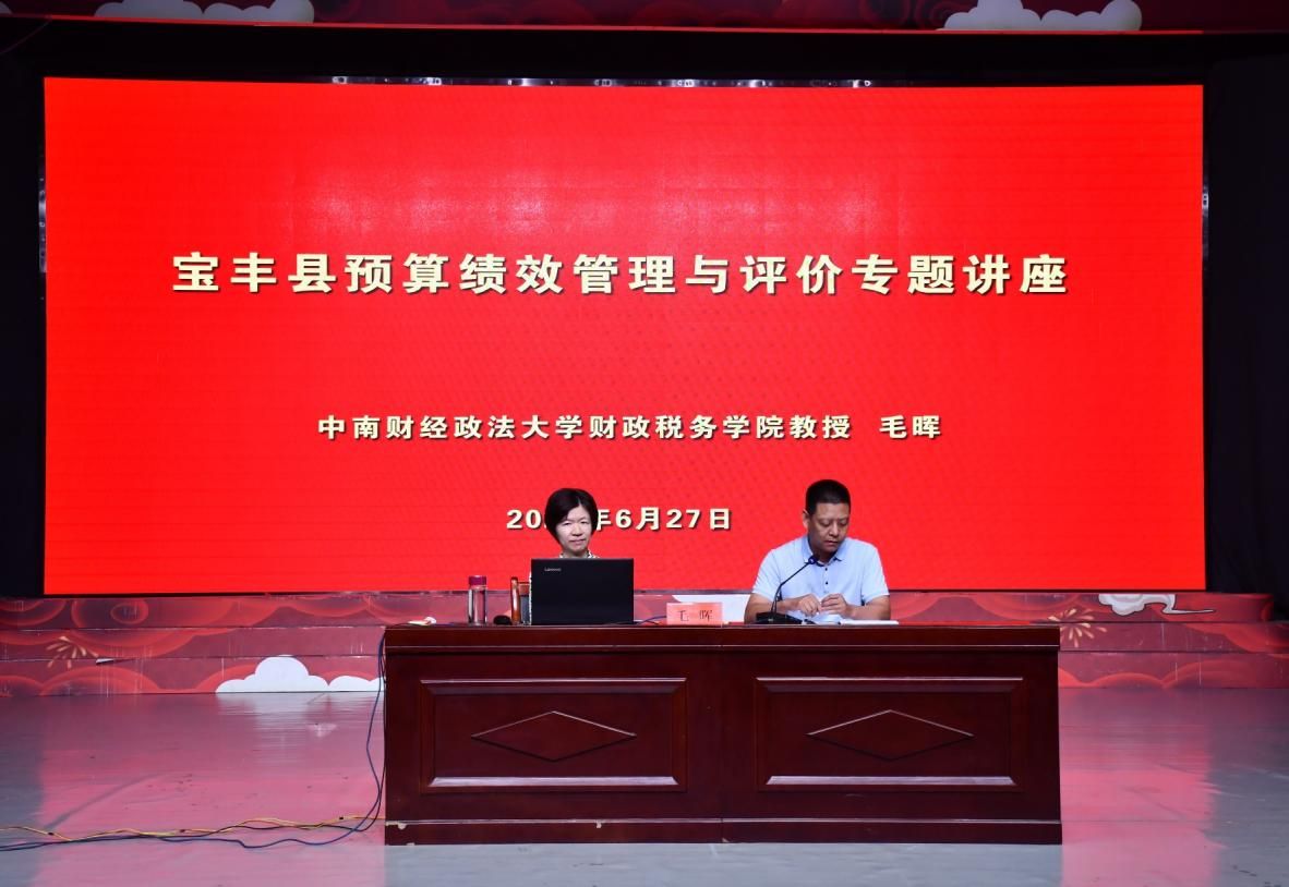 27日上午,在宝丰县融媒体中心演播大厅,由我院毛晖教授开展宝丰县预算绩效管理与评价专题讲座,全县各预算部门财务负责人、县财政局班子成员以及各业务股室负责人共200余人参加本次讲座。讲座由财政局党组成员、副局长林帅锋主持。首先,林帅锋向参会人员介绍了当前县预算绩效管理的开展情况以及存在的问题,并提出相关要求。在讲座中,毛晖对全面实施预算绩效管理的意义、目标任务及具体要求进行了详细讲解,多方面对预算绩效管理进行深层次拓展。最后,县财政局党组成员、副局长曹书杰要求各预算部门要以此讲座为契机,认真领会、吃透用好政策,切实提高思想认识。
