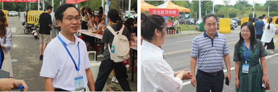 学校和学院高度重视研究生新生报到工作。校党委书记侯振发,校长、党委副书记杨灿明,校党委副书记陈狮,校党委常委、副校长覃红,校党委常委、副校长刘仁山,副校长徐涤宇以及相关职能部门负责人等一行莅临迎新驻点,看望慰问迎新志愿者和工作人员;工商管理学院党委书记余小朋,院长吴海涛,副院长石军伟,院党委副书记朱艳平等领导对学院迎新工作进行指导慰问。