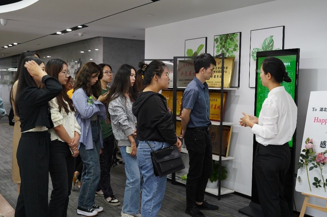 活动伊始,湖北青创园的工作人员带领支部成员参观园区青展汇展厅,向支部成员介绍了园区的运营模式以及赋予给青年的各种优惠的创业政策,并带领支部成员近距离观摩优秀创业团队的科技成果。