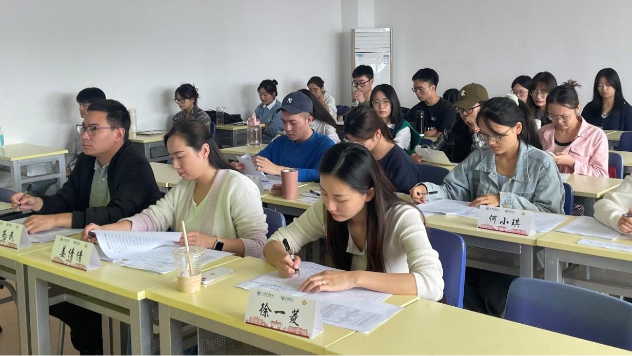 本次比赛共有20名硕博研究生参与,研究生工作办公室辅导员姜倩倩老师、徐一菱老师、江为民老师以及硕士研究生2022级各学生党支部书记担任此次比赛评委。在主持人向现场观众介绍完比赛规则后,比赛正式开始。