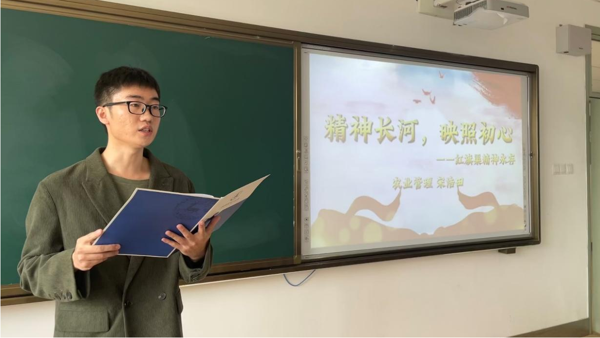 其中6号选手宋浩田同学的《精神长河,映照初心——红旗渠精神永存》讲述了自己家乡的故事——河南安阳林县红旗渠建设中一支特殊的队伍和“自力更生、艰苦创业、团结协作、无私奉献”的红旗渠精神。呼吁同学们心中应有一条红旗渠,为实现中华民族伟大复兴不懈奋斗。