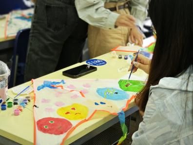 紧接着进入创作环节“心理投射绘画”。各小队面临两种心理投射绘画模式的选择:选项A“心理隐喻”,鼓励参与者用抽象符号表达压力与理想状态,比如有同学用乌云象征困境,用彩虹翅膀寄托突破困境的渴望;选项B“叙事疗愈”则将风筝划分为四象限,分别描绘“过去困扰”“当下心境”“未来期待”及“给同伴的祝?!?。同学们充分发挥创造力,认真绘制着属于自己小队的风筝,通过画笔释放内心情绪。