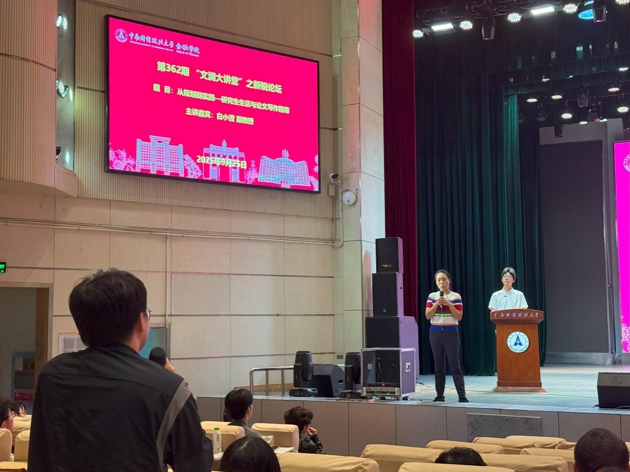 (通讯员:汪子昂 李玥)9月25日14:00,由校研究生院、党委研究生工作部、研究生会、研究生学术创新中心主办,金融学院研究生会承办的第362期“文澜大讲堂”之新锐论坛:“从规划到实践——研究生生活与论文写作指南”专题讲座在南湖会堂圆满举行。本次讲座特邀中南财经政法大学金融学院白小滢副教授主讲。金融学院400余名硕博士研究生参与了此次讲座。