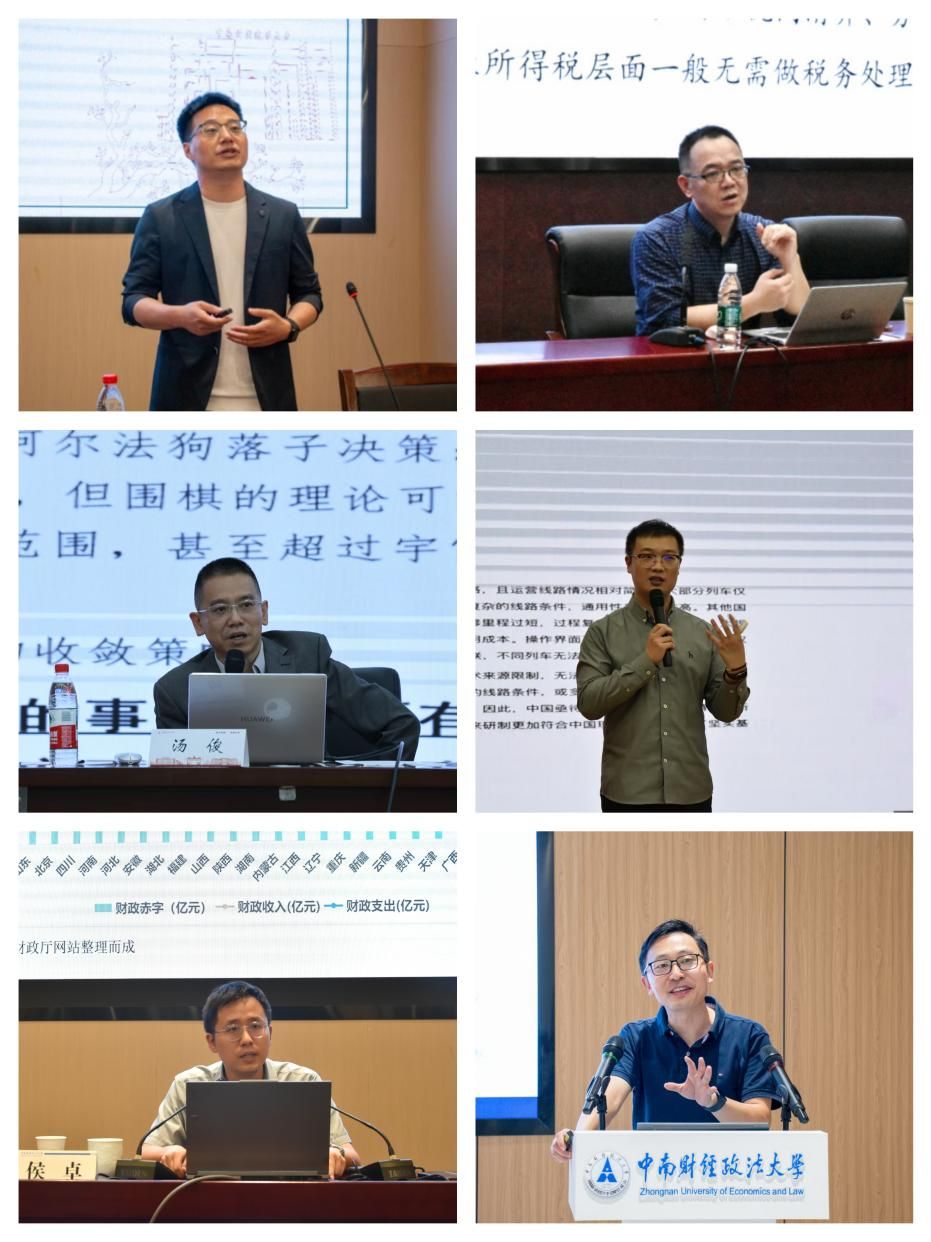 图:经济学院谢靖副教授、法学院商法教研室向前主任、信息工程学院汤俊教授,工商管理学院副教授刘文通,法学院副院长、侯卓教授,金融学院董志华教授开展精彩讲座